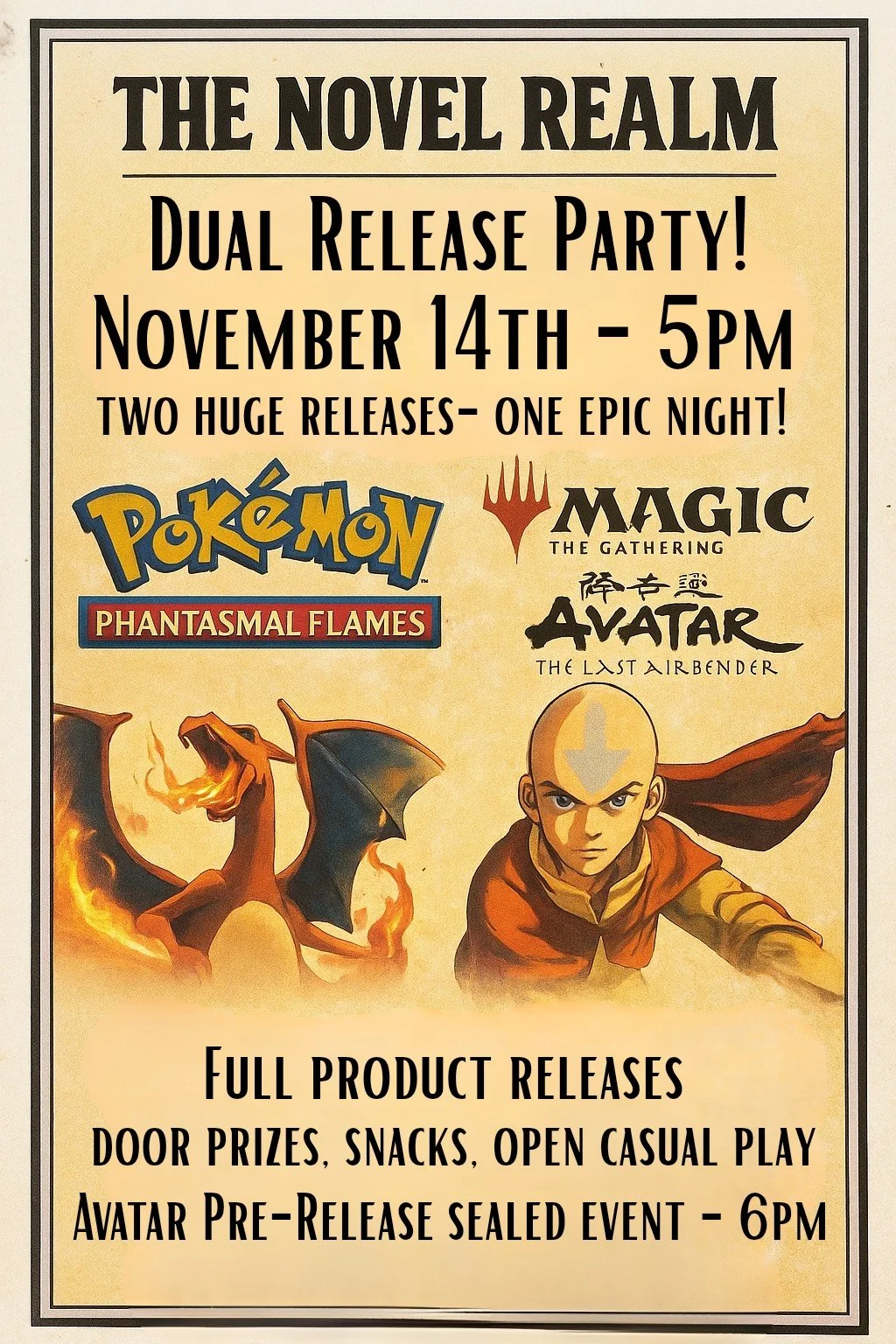 The Novel Realm offers a wide variety of events. A few things we host-Magic the Gathering events, craft & sips, open play games, RPGs, bookclub, birthday parties, bingo nights, trivia, and more!