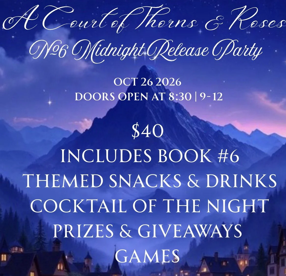 Shop Clear Filters Filter Clear Filter Game On 💋 Sale Price: $15.00 Original Price: $19.00 Sale April Bookclub 🩷 $10.00 ACOTAR #6 Preorder Sale Price: $28.80 Original Price: $32.00 Sale ACOTAR Book #7 Sale Price: $34.20 Original Price: $38.00 Sale Midnight Release Party (ACOTAR #6) $40.00 The Wolfe and the Sparrow - signing event $25.00 Spring Craft & Sip | Adult Easter Egg Hunt $30.00 Unrivaled - Preorder (Book Only) $20.00 Unrivaled Midnight Release $30.00 Heated Rivalry Bingo Night #2 $10.00 Heated Rivalry Bingo Night $10.00 Sold out Galentines Craft & Sip $40.00 Sold out Regency Era Tea Party $35.00 The Novel Realm Gift Card from $25.00 No results found No results match your search. Try removing a few filters.